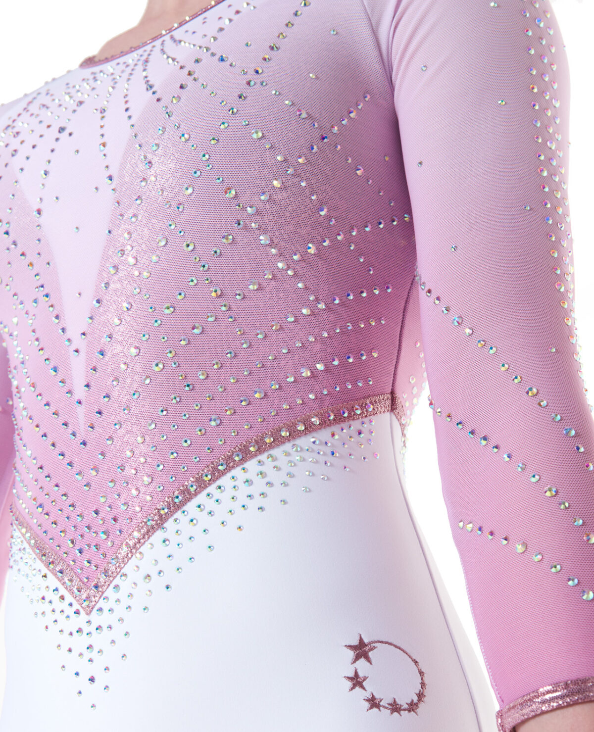 Sporty and stylish pink ombre long sleeve leotard made from sports lycra and complimentary mesh 3/4 sleeves. Sunning AB crystal starburst embellishment For large/club orders or if you would like to customise this design please contact us directly.£100.00 -