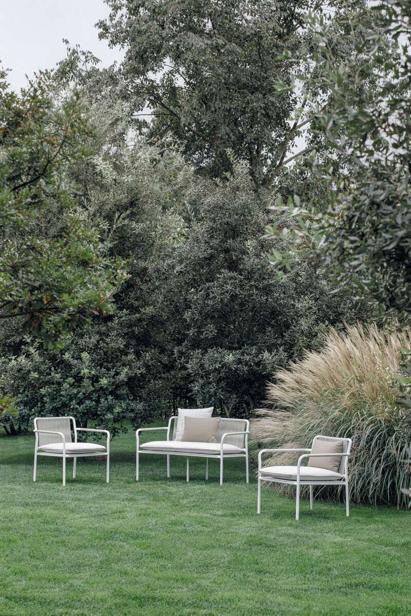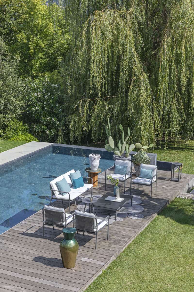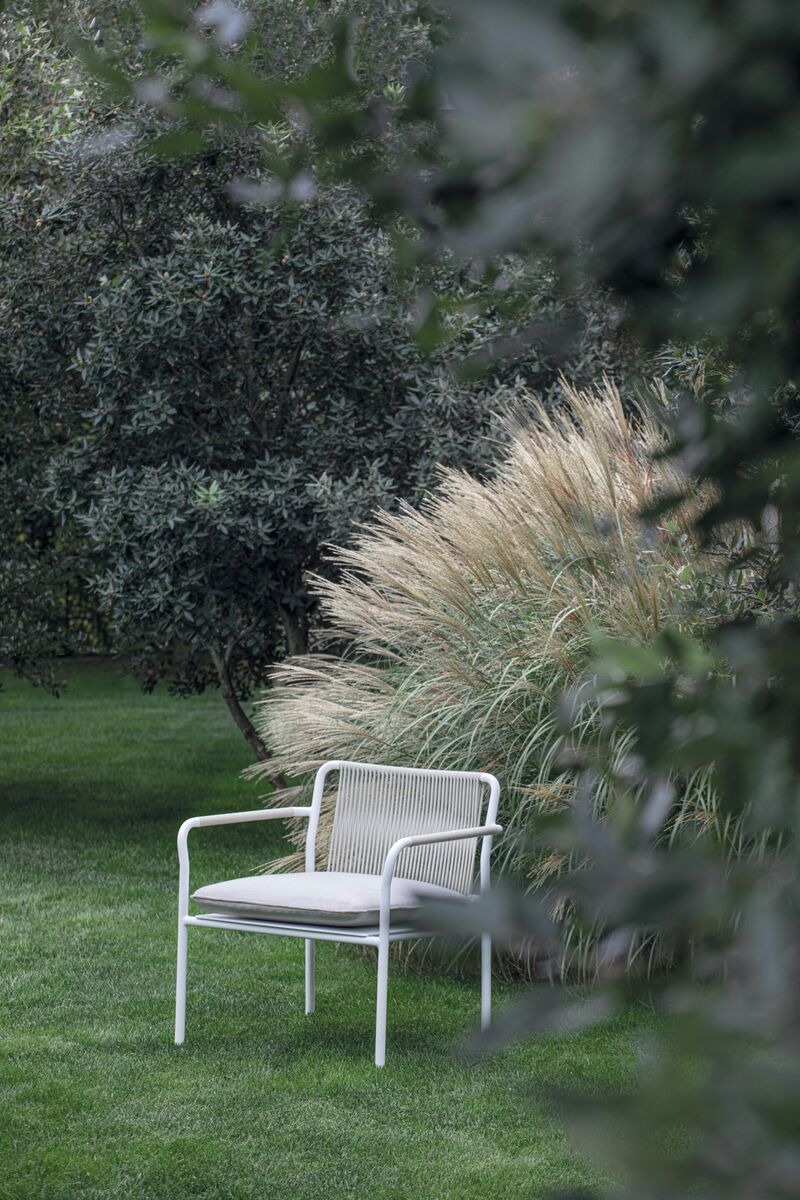 The Aluminium Lounge Chair by Atmosphera features a durable powder-coated aluminum frame and a minimalist profile. Suitable for various outdoor settings.