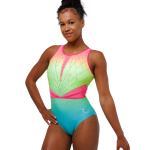 Front: Lycra bodice in white and lemon lycra and decorative floral embellished AB crystals