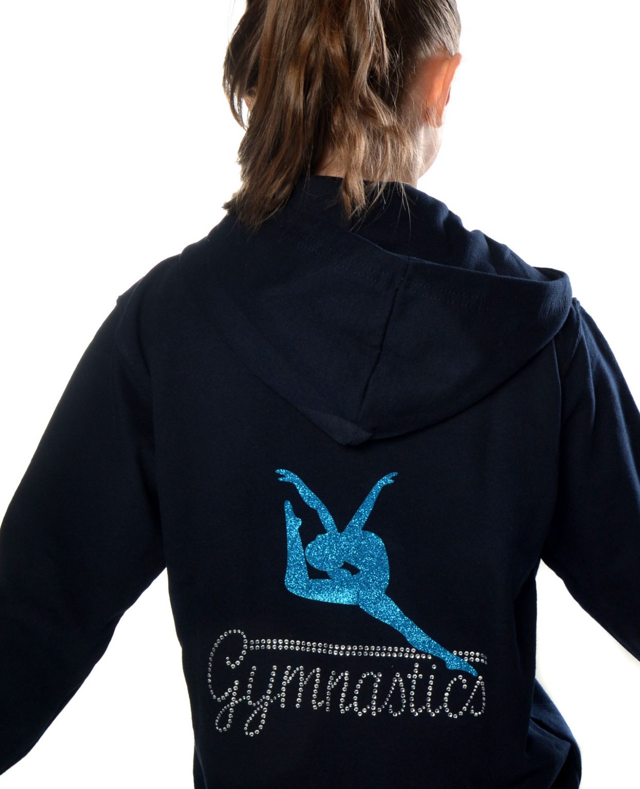 Looking for a gymnastics zip hoodie as unique as your are, then this is your chance to design your very own, pick a motif for the front and back – its that easy, and what’s more you can even add your name in diamantes for a small charge..