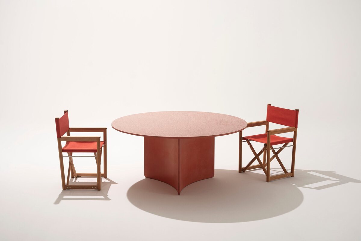 The Round Cement Garden Table by RODA, designed by Gordon Guillaumier, features a monolithic concrete structure with sinuous lines and a visible granular finish. Part of the Aspic collection, this table offers stability and elegance, making it a versatile addition to any outdoor setting.
