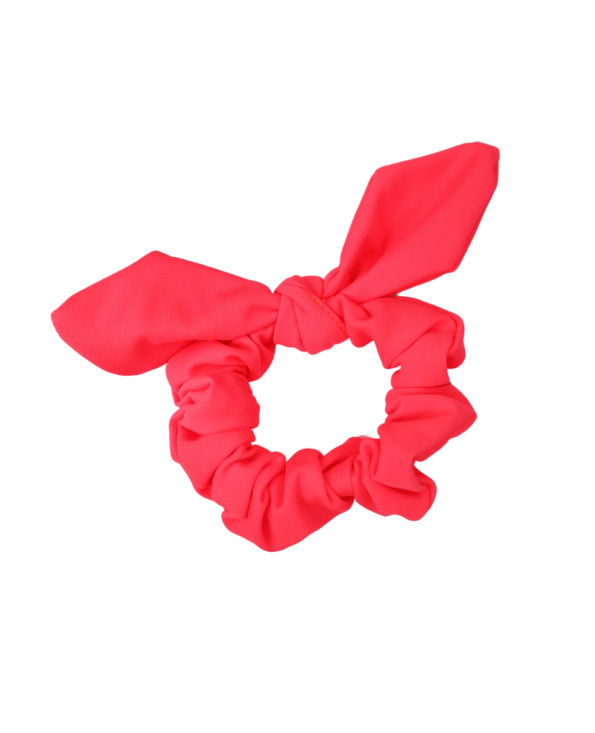 NEW knotted Scrunchie Bow in Coral Lycra for 2022 Keep you hair tidy with a bit of gymnastics sparkle!