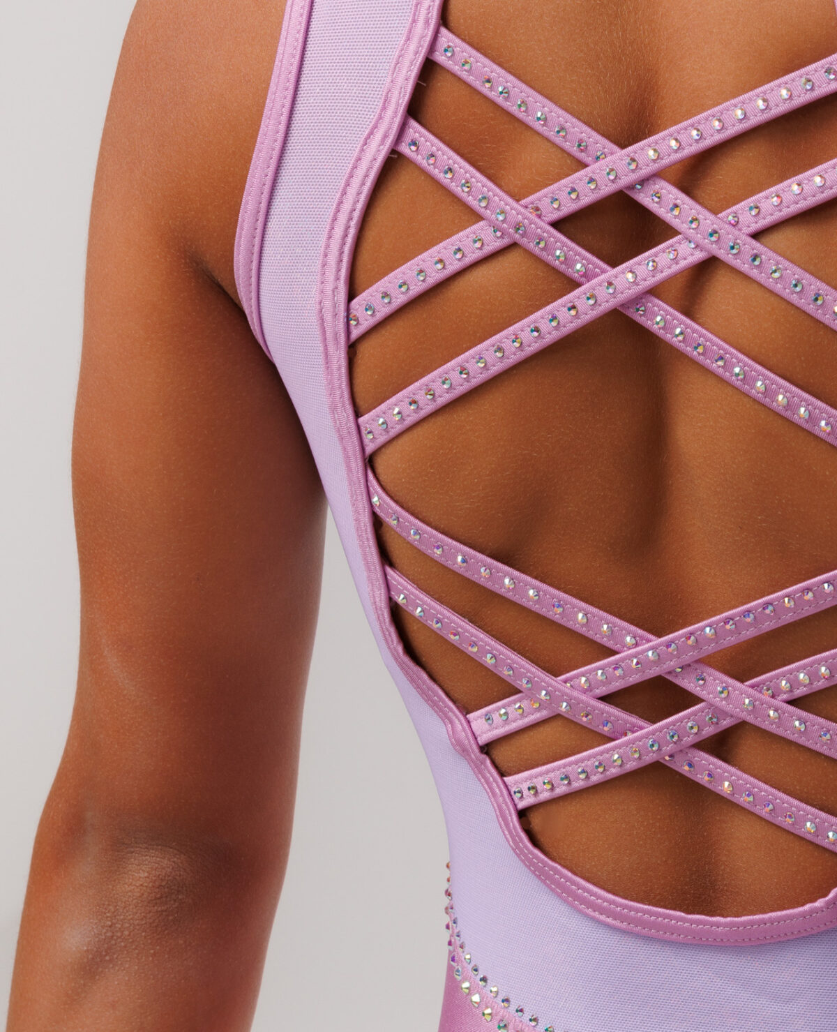 Front: Ombre with contrasting white mesh on shoulders with AB crystals and coloured crystal